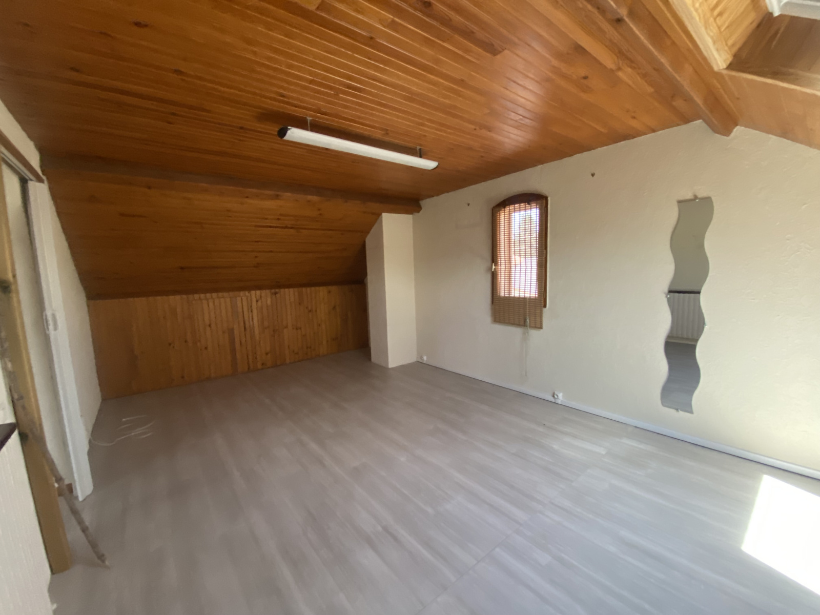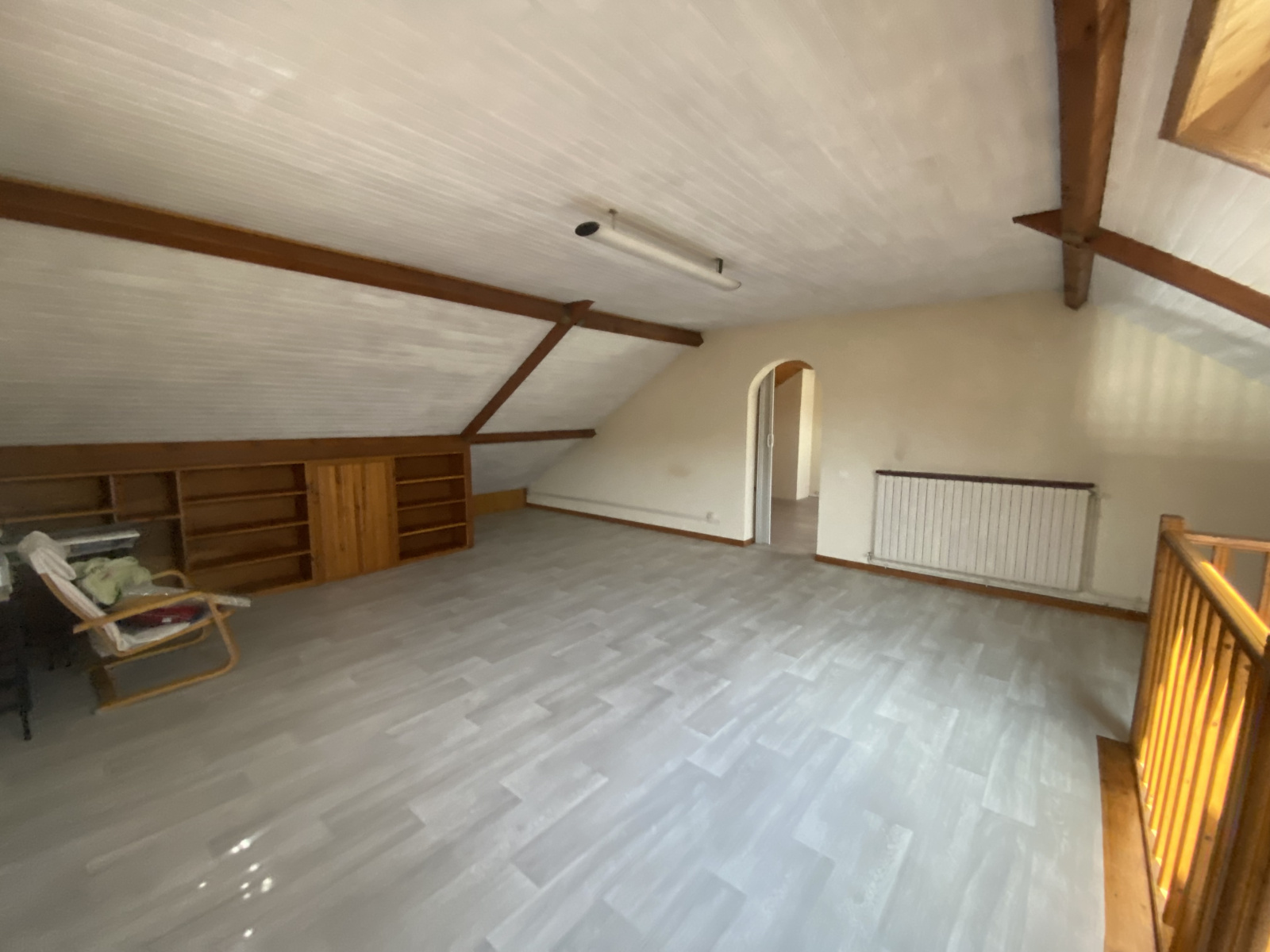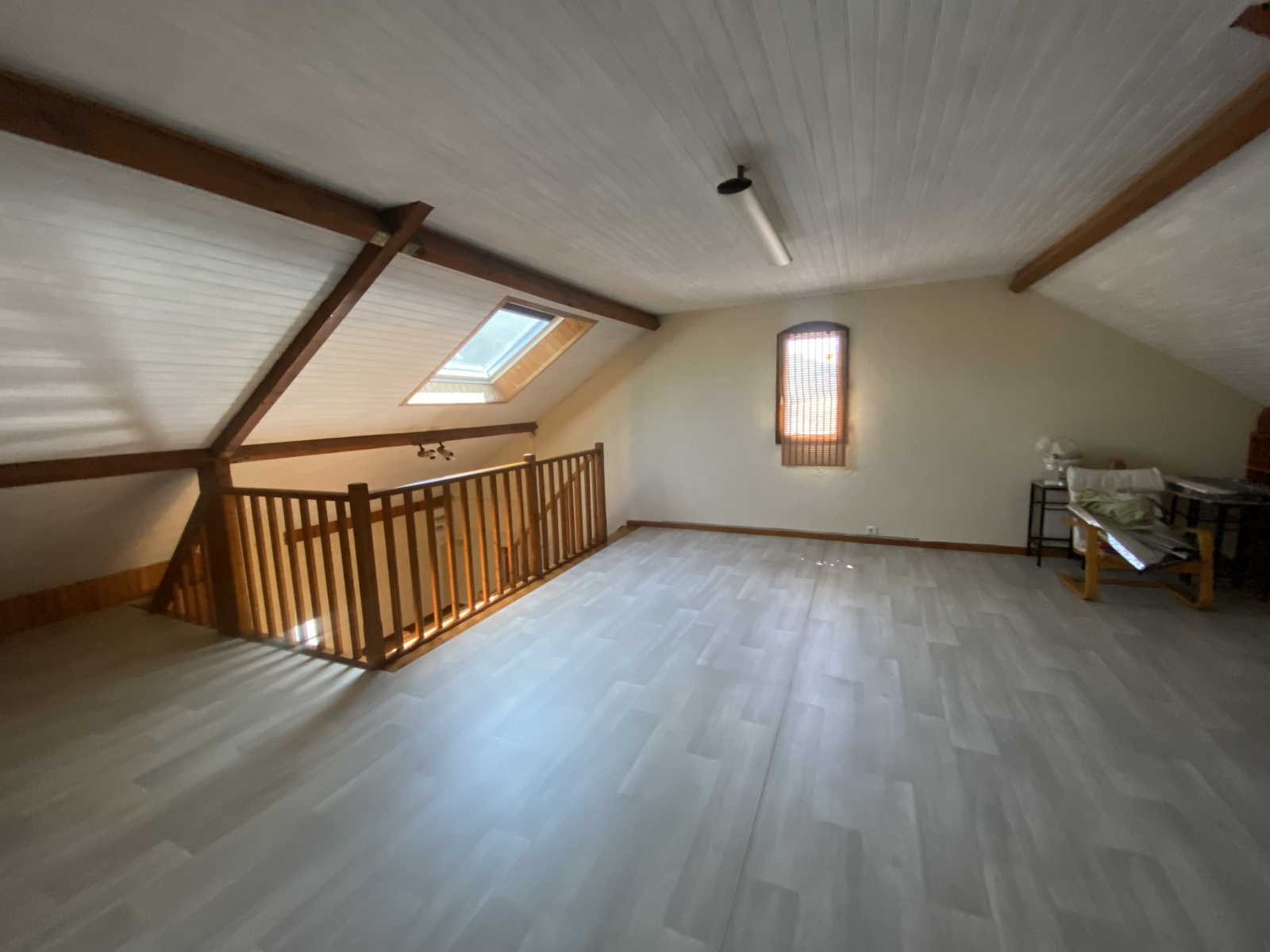 A l'étage vous découvrirez un espace mezzanine pouvant être utilisé en salle de jeu ou en espace bureau, vous trouverez également à cet étage une grande chambre.